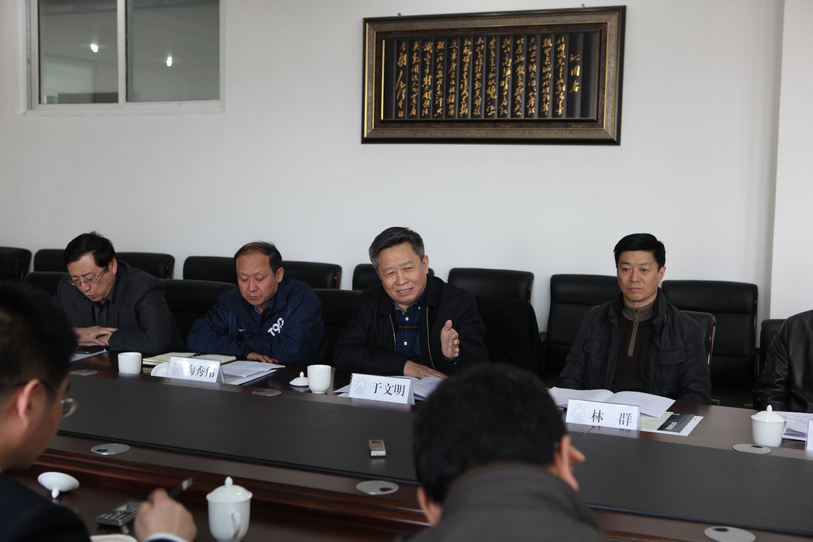 4月19日下午,党委书记于文明,董事长林群,副董事长陶秀伟、张辉、夏敏、王大超一行到到beat365在线体育进行调研。调研会由副董事长陶秀伟主持。