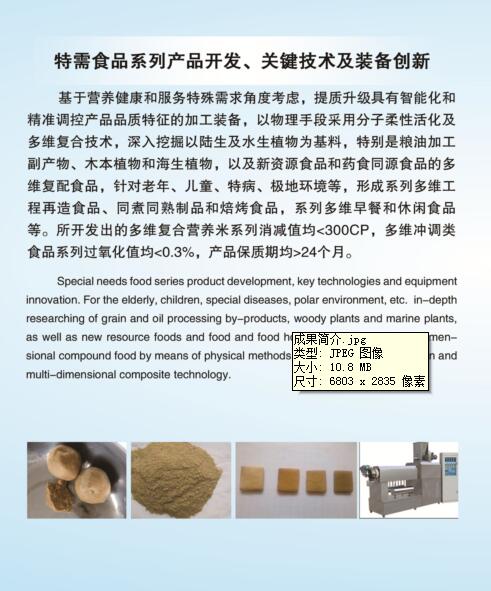 特需食品系列产品开发、关键技术及装备创新