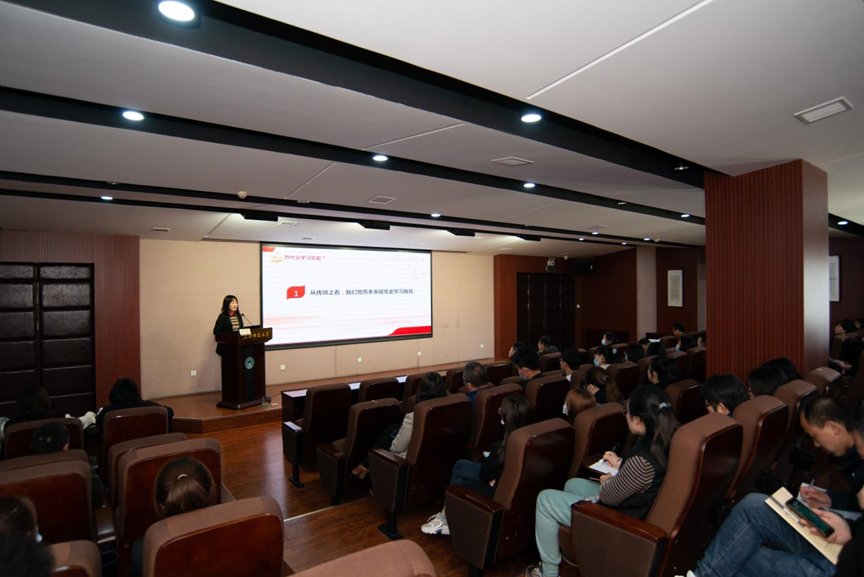 414日下午,beat365在线体育粮食工程党支部教师、员工党员、积极分子等师生代表在图书馆三楼报告厅倾听了公司党委组织部、宣传部、统战部联合主办,图书馆和马克思主义公司共同承办的“四史”学习教育之党史专题报告。