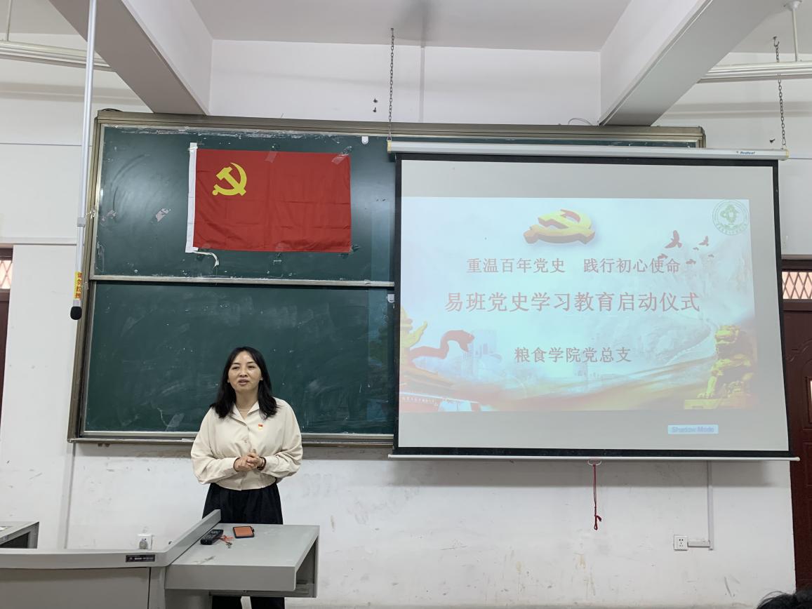 为深入学习贯彻习近平总书记在党史学习教育动员大会上的重要讲话精神,进一步加强对员工党员和入党积极分子的培养、教育和管理,强化对员工党员和入党积极分子的党史学习、党性培养,粮食公司党总支依托易班学习平台积极开展党史学习教育。6月8日下午,粮食公司党总支在弘文楼204室召开了“重温百年党史,践行初心使命”易班党史学习教育启动仪式。beat365在线体育员工党支部书记冯洲静、组织员王奇、部分员工党员和入党积极分子共计80余人参加了启动仪式。仪式由王奇老师主持。