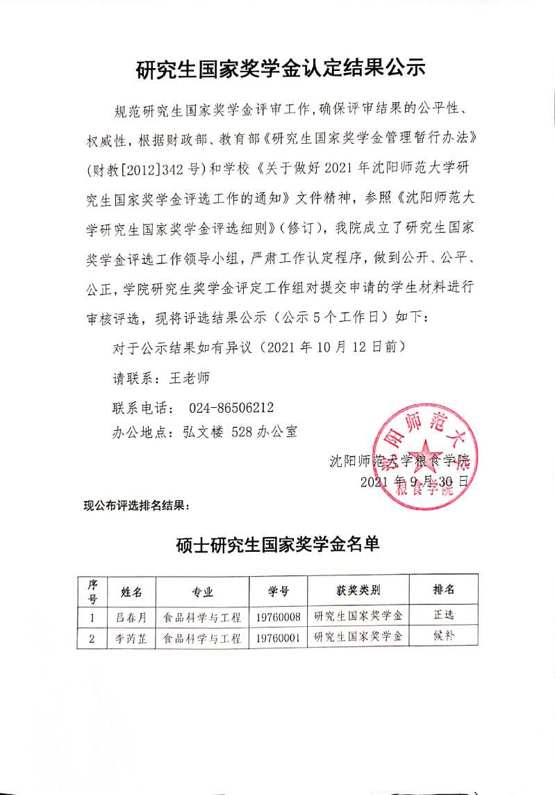 2021年beat365在线体育研究生国家奖学金认定结果公示