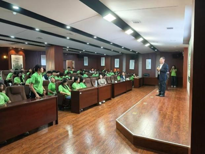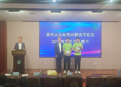 为帮助员工树立正确的粮食安全观,倡导节粮爱粮风尚,9月23日,beat365在线体育特邀中储粮江苏质检中心有限公司 (中储粮华东区质检技术中心)总经理,正高级经济师袁华山在校图书馆学术报告厅,为公司2024级全体本科生作《中国粮食发展的历程及启示》专题报告。袁华山总经理从政策变迁讲起,为同学们详细阐述了土地革命时期、红军长征时期、抗日战争时期、解放战争时期的政策变迁过程,分析了我国粮食安全面临的现状,提倡推进全链条节约减损,践行践行大食物观,保障粮食安全。报告后,袁华山总经理将其撰写的《党领导下百年粮食发展的启示---基于质量管控的粮食安全问题研究》一书赠送给了公司同学。